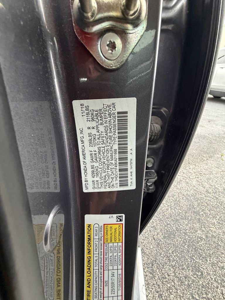 2019 Honda Accord EX Modern Steel Metallic FWD CVT 1.5T I4 DOHC 16V Turbocharged VTEC